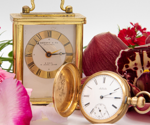 Our Timepieces Collection offers a wide range of watches and clocks, perfect for both fashion and functionality. From sophisticated brand name pieces and antique pocket watches, a beautiful collection of mantel clocks and carriage/travel clocks, to economical, beautiful, and unique watches for everyday wear. Each piece is designed to enhance your style and keep you on time. The collection is curated with an eye for design, quality, and artisanship to add a touch of elegance and precision to your life.